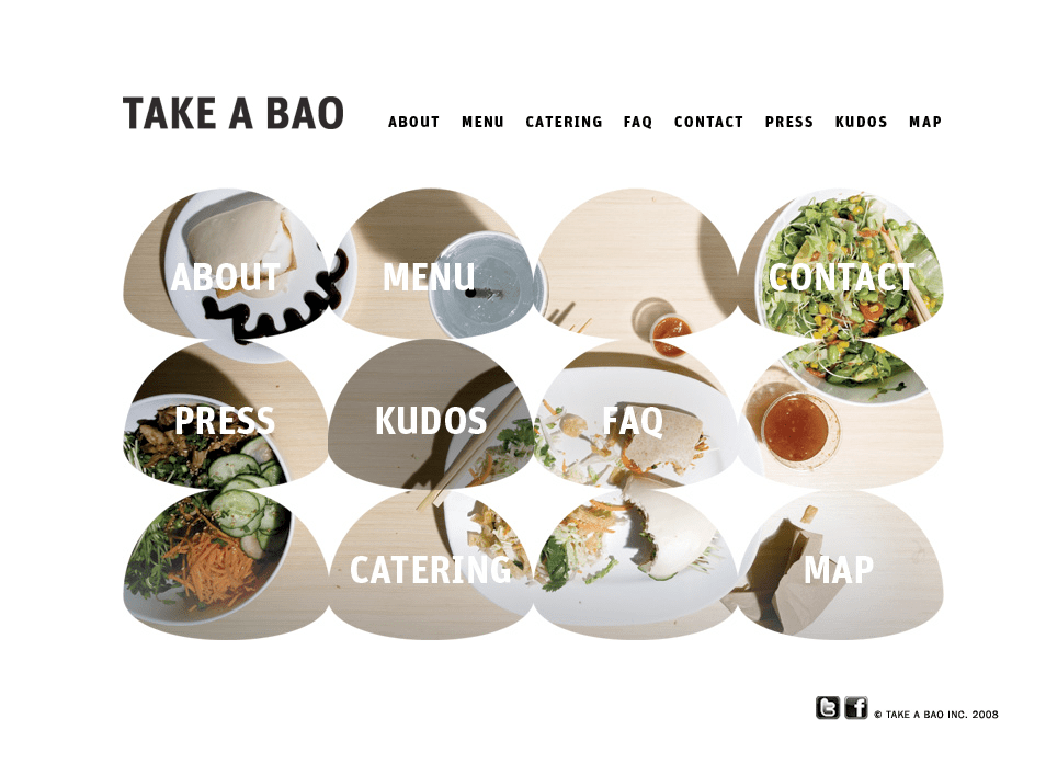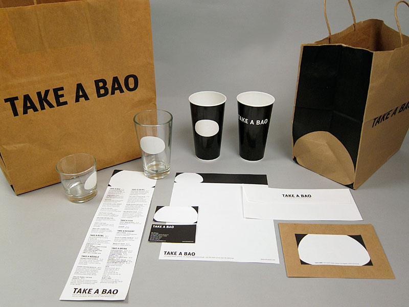 Comprehensive visual identity for the restaurant TAKE A BAO, which had multiple locations across Los Angeles. Given that the first location was in a bustling, busy food court, we leaned into a stark black and white design for the identity, as a way to stand out amidst competing stimuli.